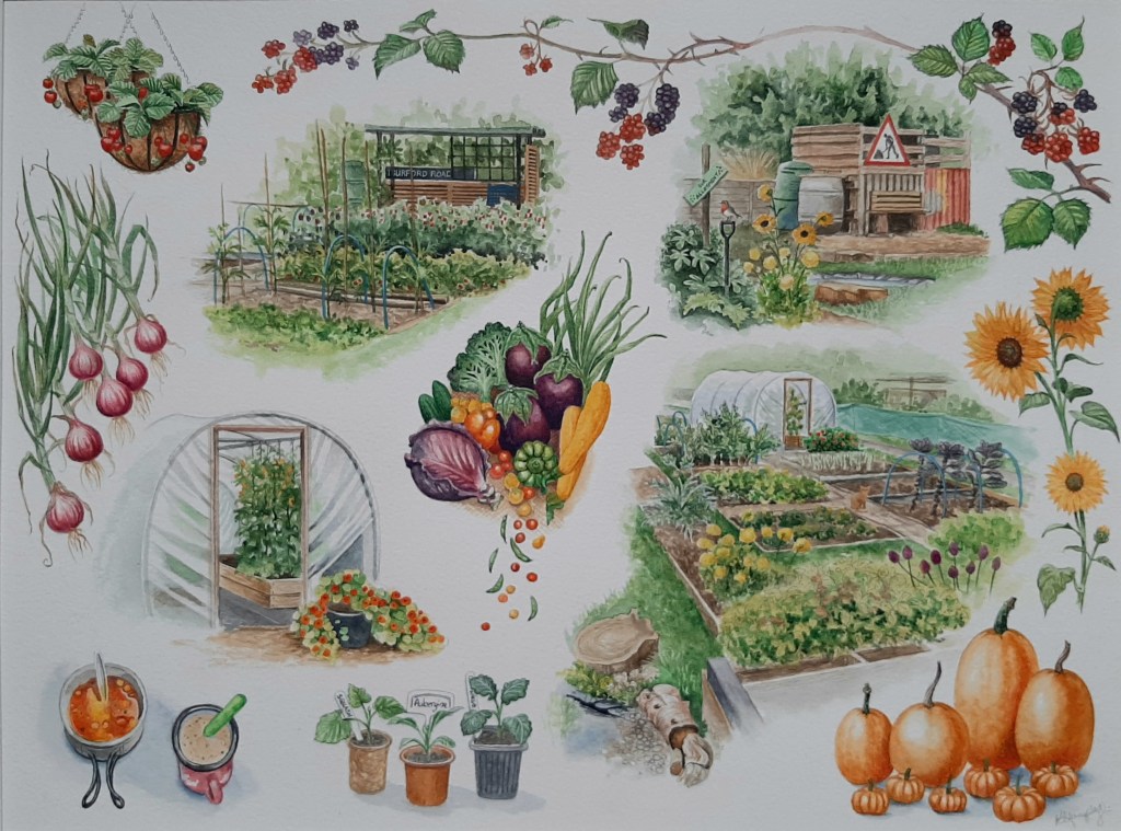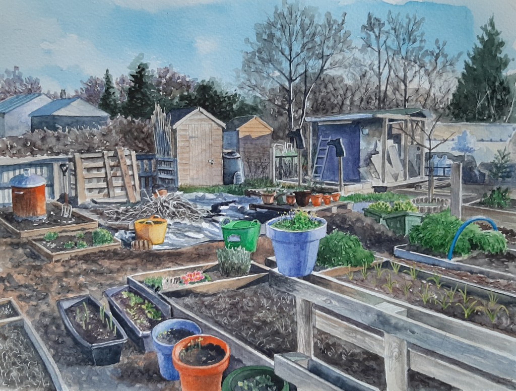 Commission a bespoke painting of your garden or allotment. I work from photographs, so if you are interested in commissioning a painting please email me first to discuss your requirements, along with a couple of photos. I can advise on painting size, aspect and if any more photos are needed.