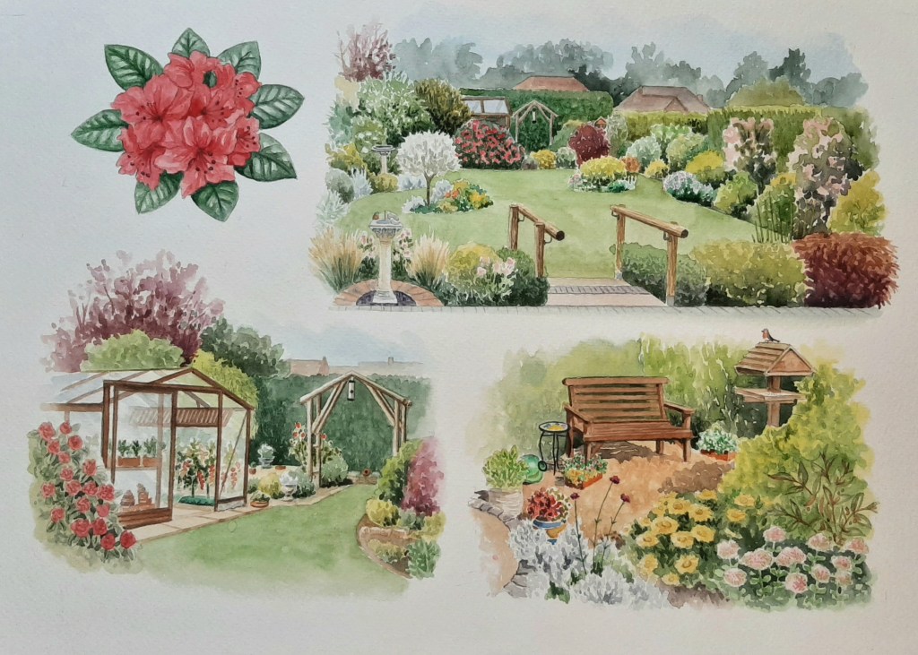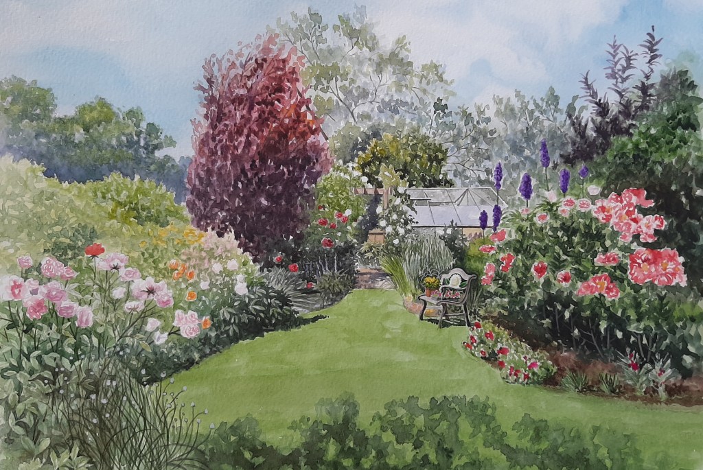 A garden portrait can make a lovely gift for someone who cherishes their garden. For Mother’s or Father’s Day – acknowledging their time spent over the years tending their garden. For Christmas – a reminder of colour, brightness and warmth in the depths of winter, when it’s cold and wet outside. Or as a precious keepsake of a garden relinquished – I know that if I were ever to move from my present house, handing over the garden to someone else would be my biggest heart wrench.