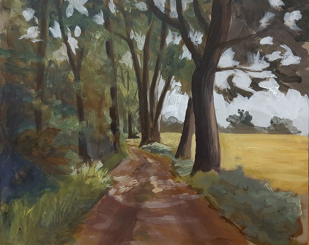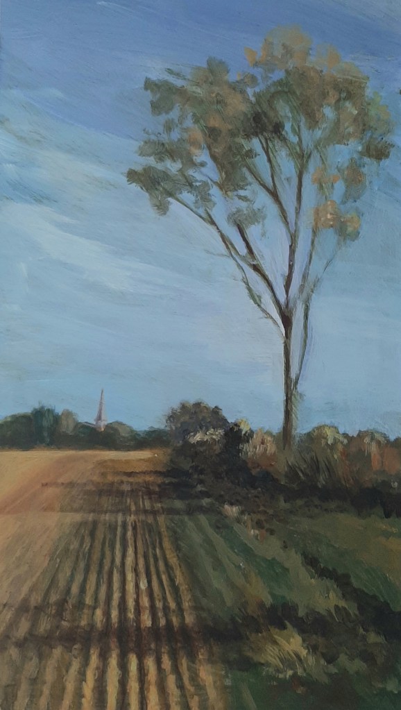 We moved from London to Halstead, Essex in 2023. I have found new inspiration in painting and photographing the landscape around me – the big skies, rolling fields, trees and hedgerows. A niggling sense of urgency has crept in to record as much of the remaining landscape as I can. Local Plans for developing and expanding Halstead will eat up much of the surrounding fields if all goes ahead. Here’s a selection of what I’ve done so far.